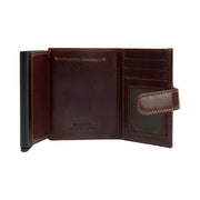 Das integrierte Aluminiumgehäuse mit Pop up System ermöglicht es, die Karten per Knopfdruck übersichtlich herauszuschieben. Der verbaute RFID Schutz verhindert das ungewollte Auslesen sensibler Kartendaten. Ein Druckknopfverschluss sorgt dafür, dass alles sicher verstaut bleibt.