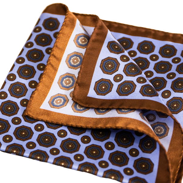 Pocket Square Alter Knabe - "Light Blue Bug Brown"