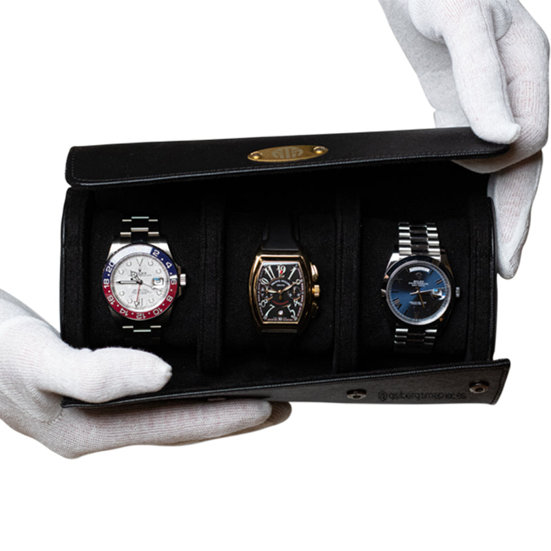 This GTP 3-Some watch roll is designed to fit three watches. All cushions use an easy snap button system which makes it effortless to store your watch in the roll. The 3-Some watch roll is a perfect tool to showcase and protect your beloved watches in an elegant way.